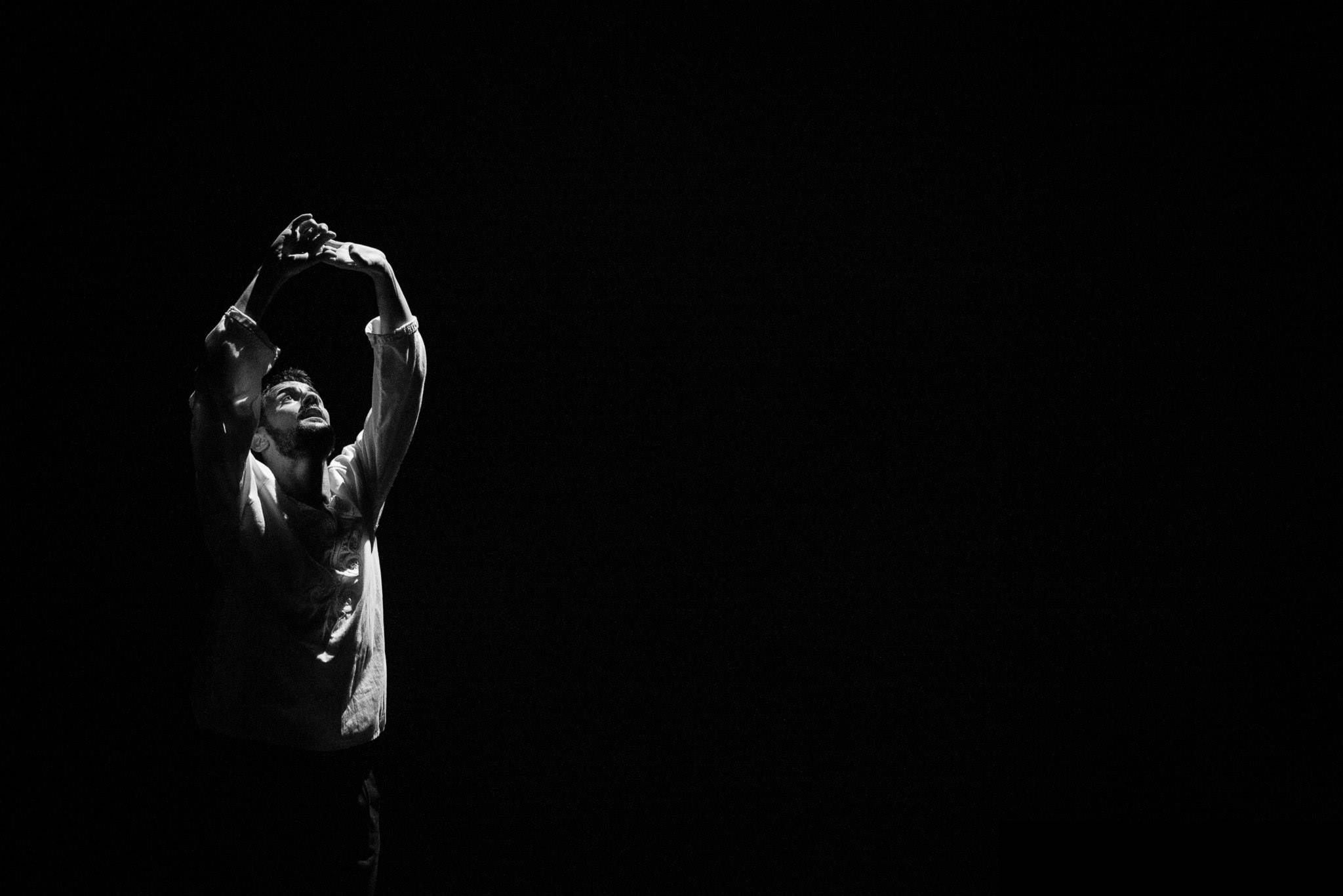 L’homme entre en scène, seul, dans une marche lente et spasmodique. La quête s’avère être résolument esthétique et spirituelle. Les réserves sont minces et le chemin est long, alors, sur ce plateau nu, semblable au désert abritant le colossal cactus, la danse s’installera lentement. Entre ralenti et accélération, entre espace caché et décomposition symétrique, le mouvement s’expose tantôt aérien tantôt enraciné. Un parallèle illustrant nos extrêmes, nos forces, nos faiblesses et notre résistance face à l’aridité ambiante. Le danseur se jouera des codes de l’apparence pour faire tomber les jugements trop souvent hâtifs face à une réalité qui nous semble fixe et inconvertible. Il vit ici une lutte sans merci afin de trouver son havre de paix, planter ses racines pour enfin conquérir sa lumière. Au son du grand Toumani Diabaté, maître kora malien,Cactus est un voyage interne et initiatique au cœur de nos propres origines.
